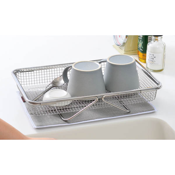 ごちゃごちゃする小物の水切りに。自立できるスタンド形状で省スペース。