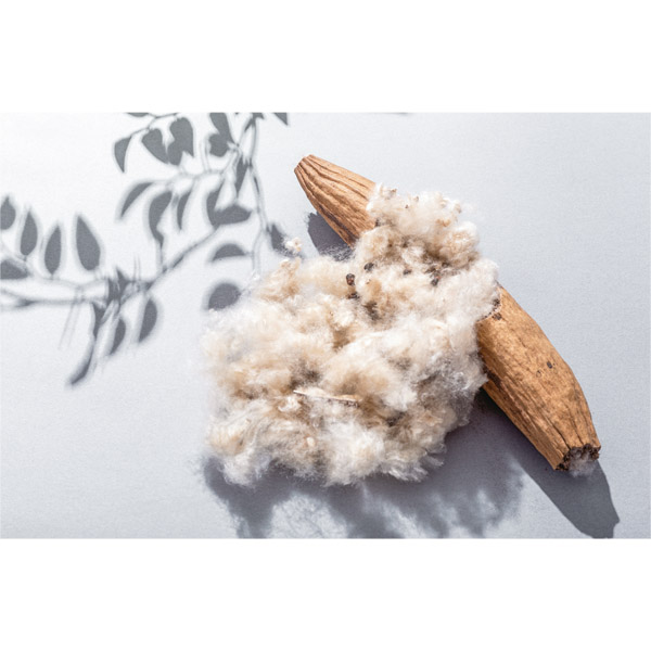 羽毛に似た性質を持ち、軽くて、吸放湿に優れています。木の伐採を必要としないので、森林保護にもつながります。