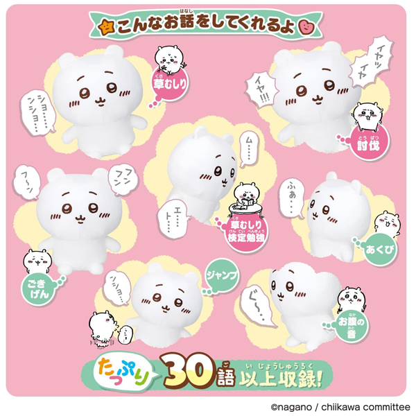 草むしりや討伐の際のちいかわのボイスが30語以上収録。